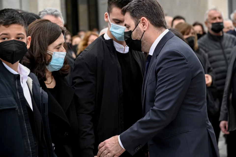 Τραγικές φιγούρες η σύζυγός του και τα παιδιά του, ενώ πλήθος κόσμου έδωσε το «παρών» στην κηδεία του Δημήτρη Τσοβόλα, μεταξύ των οποίων ο Νίκος Ανδρουλάκης και ο Αλέξης Κούγιας.