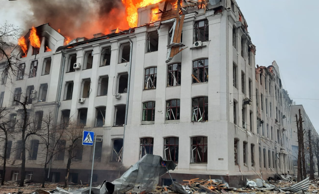 2 березня близько 08:10 у м. Харків внаслідок ракетного удару по будівлі СБУ у Харківській області, ГУ Нацполіції у Харківській області та будівлі Харківського національного університету ім. В. Н. Каразіна попередньо постраждало 3 особи. pic.twitter.com/GjAIpYooft
