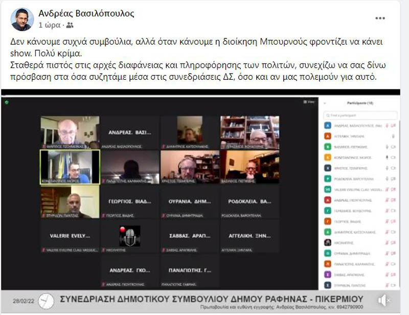 Τσεμπέρης σε Βασιλόπουλο: Άμεση ήταν η απάντηση του Αντιδημάρχου Ραφήνας-Πικερμίου Χρήστου Τσεμπέρη στο Δελτίο Τύπου που εξέδωσε ο Ανδρέας Βασιλόπουλος και στο οποίο εμμέσως πλην σαφώς παραδέχεται ότι θα συνεχίσει να δείχνει από το δικό του κανάλι το δημοτικό συμβούλιο.