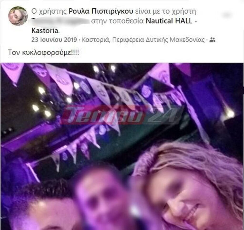 Όπως δείχνουν φωτογραφίες που δημοσίευσε η ιστοσελίδα tempo24, στις 23 Ιουνίου, το ζευγάρι διασκέδαζε σε μπουζούκια στην πόλη, με τη Ρούλα Πισπιρίγκου μάλιστα να γράφει στη λεζάντα της ανάρτησης «Τον κυκλοφορούμε» αναφερόμενη σε μέλος της οικογένειάς της, που συνοδεύει την ίδια και τον Μάνο.