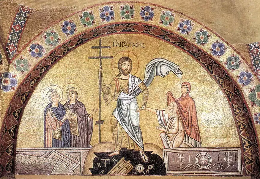 Ενώ το σώμα του Ιησού βρίσκεται στον τάφο, η ψυχή του κατέβηκε προσωρινά στον Άδη για να μεταφέρει στους νεκρούς τον λόγο του. Εν τω μεταξύ οι Αρχιερείς με την άδεια του Πιλάτου, εγκαθιστούν φρουρά έξω από το μνήμα του Χριστού. Αυτό το έκαναν για να μην μπορέσουν οι μαθητές του να κλέψουν το σώμα του και να διαδώσουν ότι αναστήθηκε.