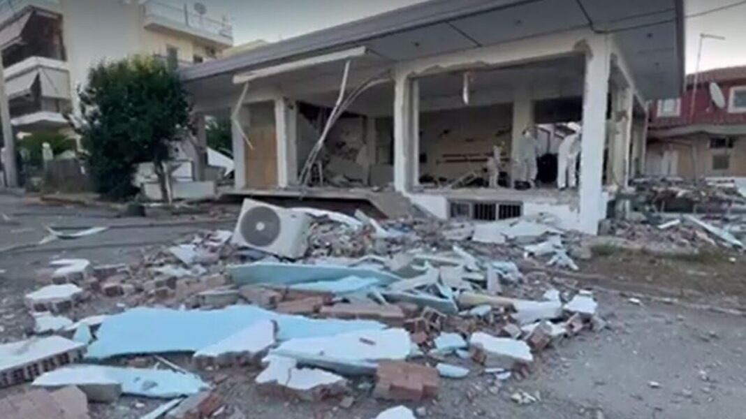 Από την έκρηξη έχει δημιουργηθεί ένας μεγάλος κρατήρας στο πάτωμα του κτηρίου.