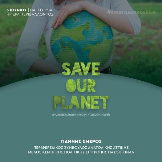 Ο Γιάννης Σμέρος, Περιφερειακός Σύμβουλος Ανατολικής Αττικής & Μέλος της Κεντρικής Πολιτικής Επιτροπής ΠΑΣΟΚ – ΚΙΝΑΛ, αναφέρει με αφορμή την Παγκόσμια Ημέρα Περιβάλλοντος ότι: