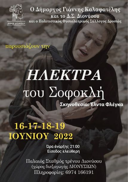 «Ηλέκτρα» του Σοφοκλή: Η ώρα έφτασε για το μεγάλο εγχείρημα της παρουσίασης αρχαίου δράματος σε υπαίθριο ανοιχτό χώρο στον Δήμο Διονύσου και, μάλιστα, εκεί που γεννήθηκε: στον αρχαίο Δήμο Ικαρίας (σημερινός Διόνυσος).