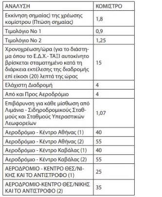 Ταξί: Τον τιμοκατάλογο με τα νέα αυξημένα κόμιστρα που εφαρμόζονται από σήμερα Παρασκευή (24/6)στα ταξί περιλαμβάνει η απόφαση του υπουργείου Υποδομών και Μεταφορών που δημοσιεύθηκε στο ΦΕΚ.