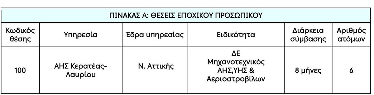 Κάλυψη εποχικών ή παροδικών αναγκών του κλάδου ΑΗΣ Κερατέας – Λαυρίου.