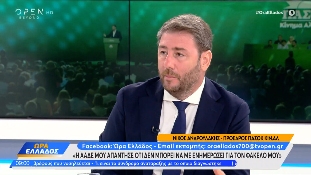 Ανδρουλάκης: Στην εκπομπή «Ώρα Ελλάδος» του OPEN TV μίλησε το πρωί της Δευτέρας ο πρόεδρος του ΠΑΣΟΚ-KINAΛ, Νίκος Ανδρουλάκης, απαντώντας σε κρίσιμα ερωτήματα της πολιτικής επικαιρότητας, μεταξύ άλλων και αυτό που αφορά τις παρακολουθήσεις αλλά και την ακρίβεια.