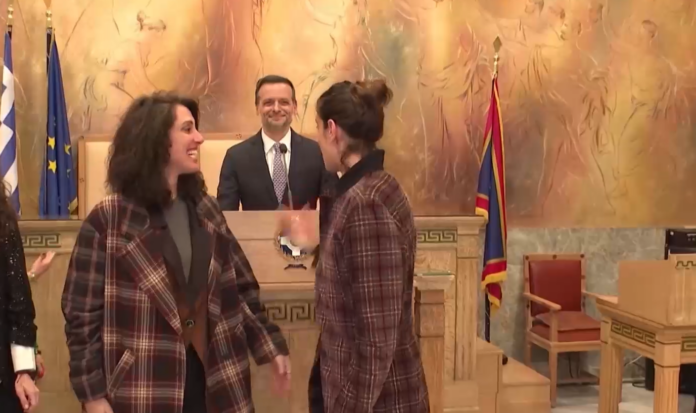 Την Πέμπτη το απόγευμα τελέστηκε ο πρώτος πολιτικός γάμος ομόφυλων γυναικών στο Δημαρχείο της Αθήνας, από τον δήμαρχο Χάρη Δούκα.