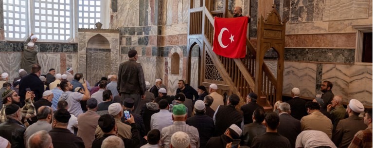 Υπενθυμίζεται ότι ο Ερντογάν εγκαινίασε τη λειτουργία του περικαλλούς βυζαντινού ναού της Κωνσταντινούπολης ως μουσουλμανικό τέμενος την περασμένη Δευτέρα, σε ειδική τελετή στην οποία είχε συνδεθεί απ’ ευθείας από το προεδρικό μέγαρο μέσω τηλεδιάσκεψης.