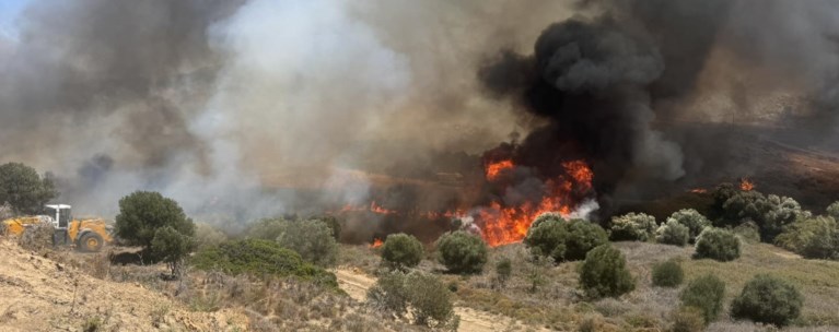 Η πυρκαγιά καίει σε δύο ανεξέλεγκτα μέτωπα. Το ένα προς την περιοχή Αψηλές απειλώντας δασική περιοχή και το άλλο προς την περιοχή των Αυγωνύμων.
